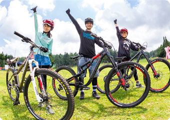 プロのMTBライダーが監修した溶岩地帯コースや、ビッグジャンプが連続するコースなど上級者でも満足できる本格コース。芝生のゲレンデを駆け降りる走りやすいコースもあり初心者でも気軽に体験できます。